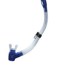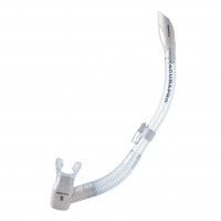 - Flexible, corrugated joint drops snorkel from face when not in use.