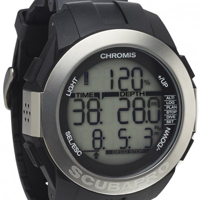The new CHROMIS wrist computer is ready for your next adventure, in or out of the water. Reaching a new level of clarity, the large display and Katana-sharp characters are proven to be exceptionally readable under water. You’ll have a host of tools at your fingertips, including a full-featured dive computer, apnea gauge, timepiece, and patented lap counter.