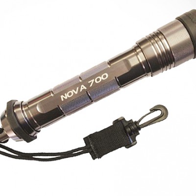 Machined from heavy-duty aluminum, both lights are lightweight yet built to last, while delivering powerful illumination. They both use the same light head, equipped with the newest CREE XML2 LED, capable of pumping out between 700 and 800 lumens. Both lights use simple twist-on/twist off activation backed by double-O-ring seals. Strategically placed knurling, raised-up diamond-shaped indentations in the metal, improves grip and makes the twist activation that much easier. A shock-proof rubber protection over the end of the light head safeguards the electronics and provides an additional no-slip surface. Rated to a maximum depth of 300m (1000ft), both models are equipped with an overpressure valve on the end cap, an important safety feature not normally found on torches in the Nova 700/700R’s price range.